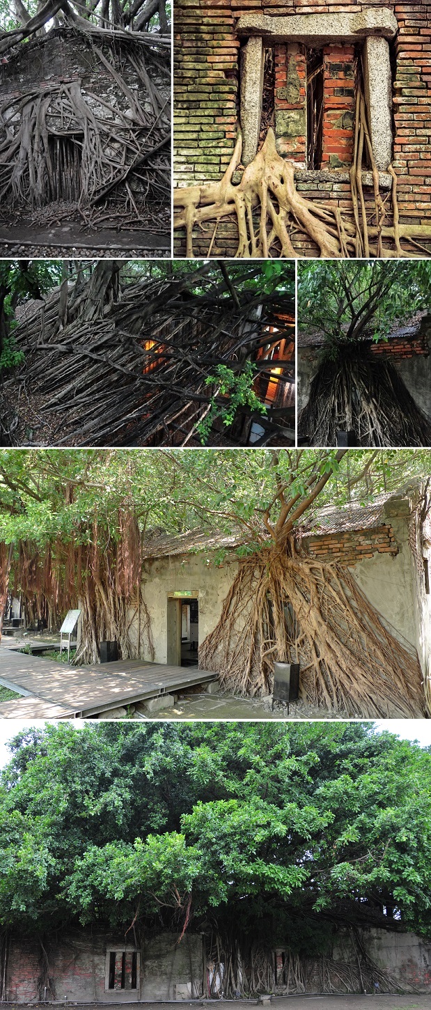 A fig tree swallowing a warehouse